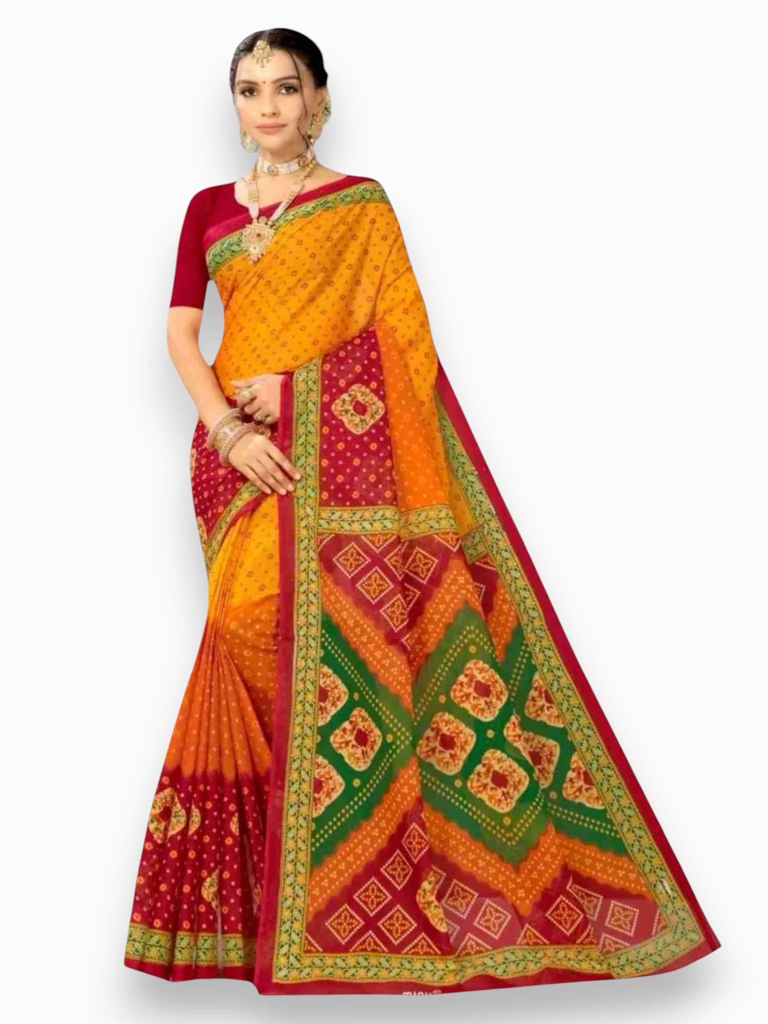| Style:- Ambadaal Bandhani | Border:- Floral Print |