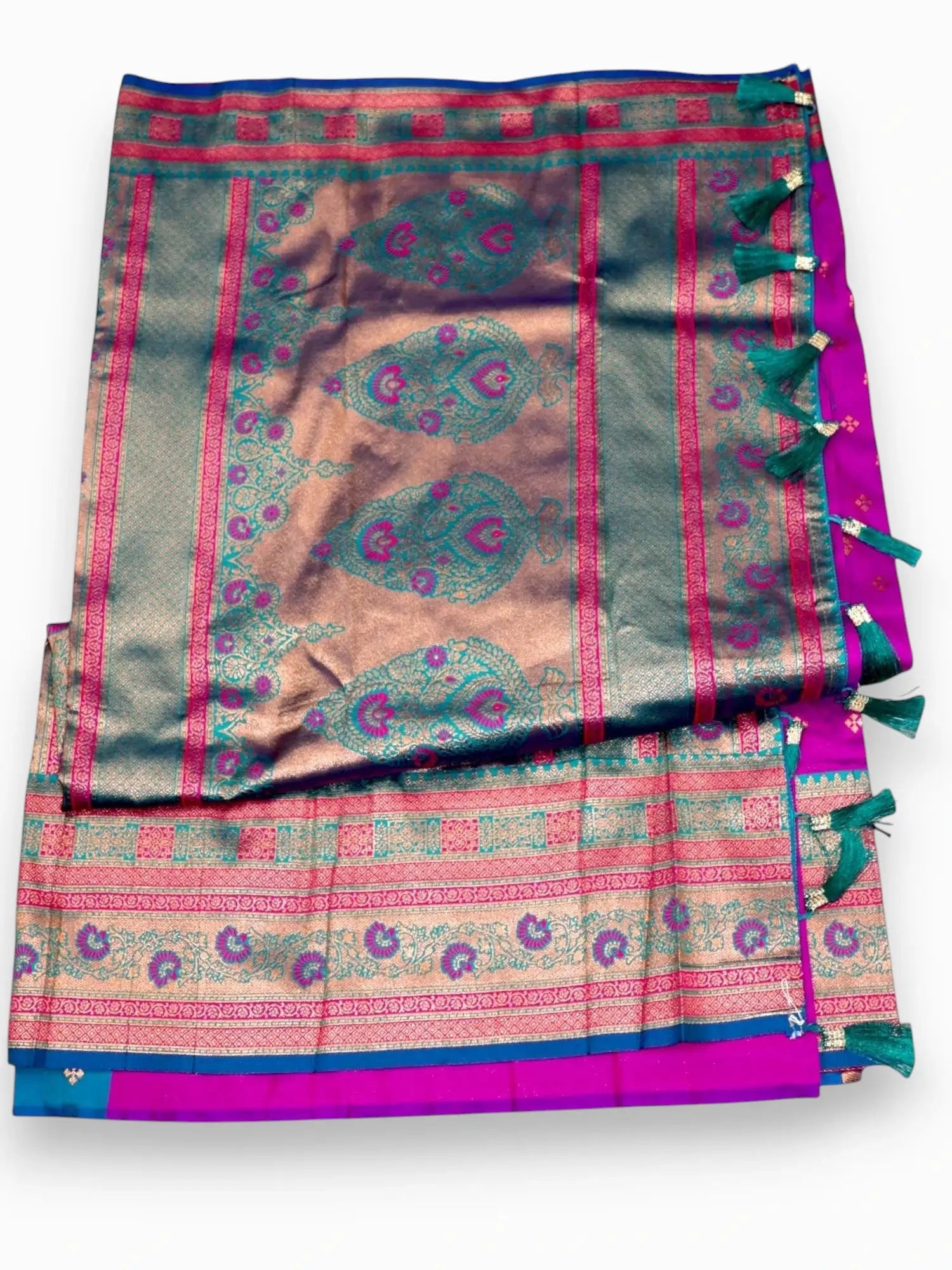 Introducing the Jiarah Premium Zari Woven Banarasi Silk Saree - a luxurious and elegant addition to your wardrobe. Made from the finest Banarasi silk, this saree features intricate zari weaving and exudes timeless grace and sophistication. Elevate your style with this saree and make a statement at any occasion.