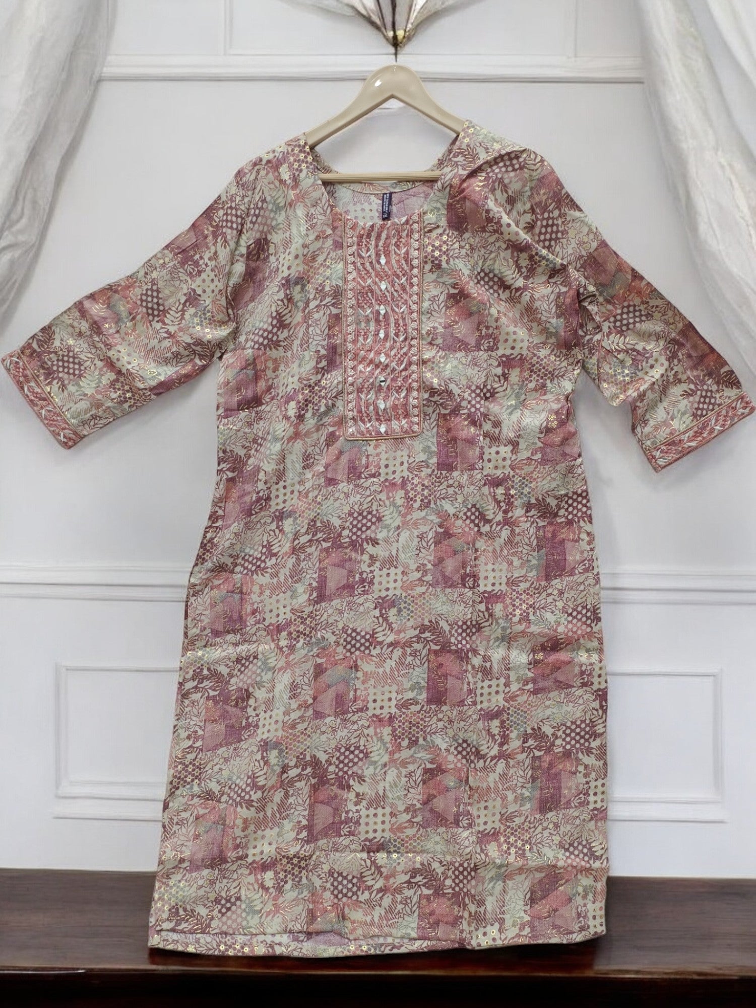 Categories: All Collections, Cotton Kurta Sets, Foil Print Kurta Sets, Geometric Print Kurta Sets, Home page, KURTA SETS, Mirror Work Kurta Sets, Rayon Kurta Sets, Straight Kurta Sets,