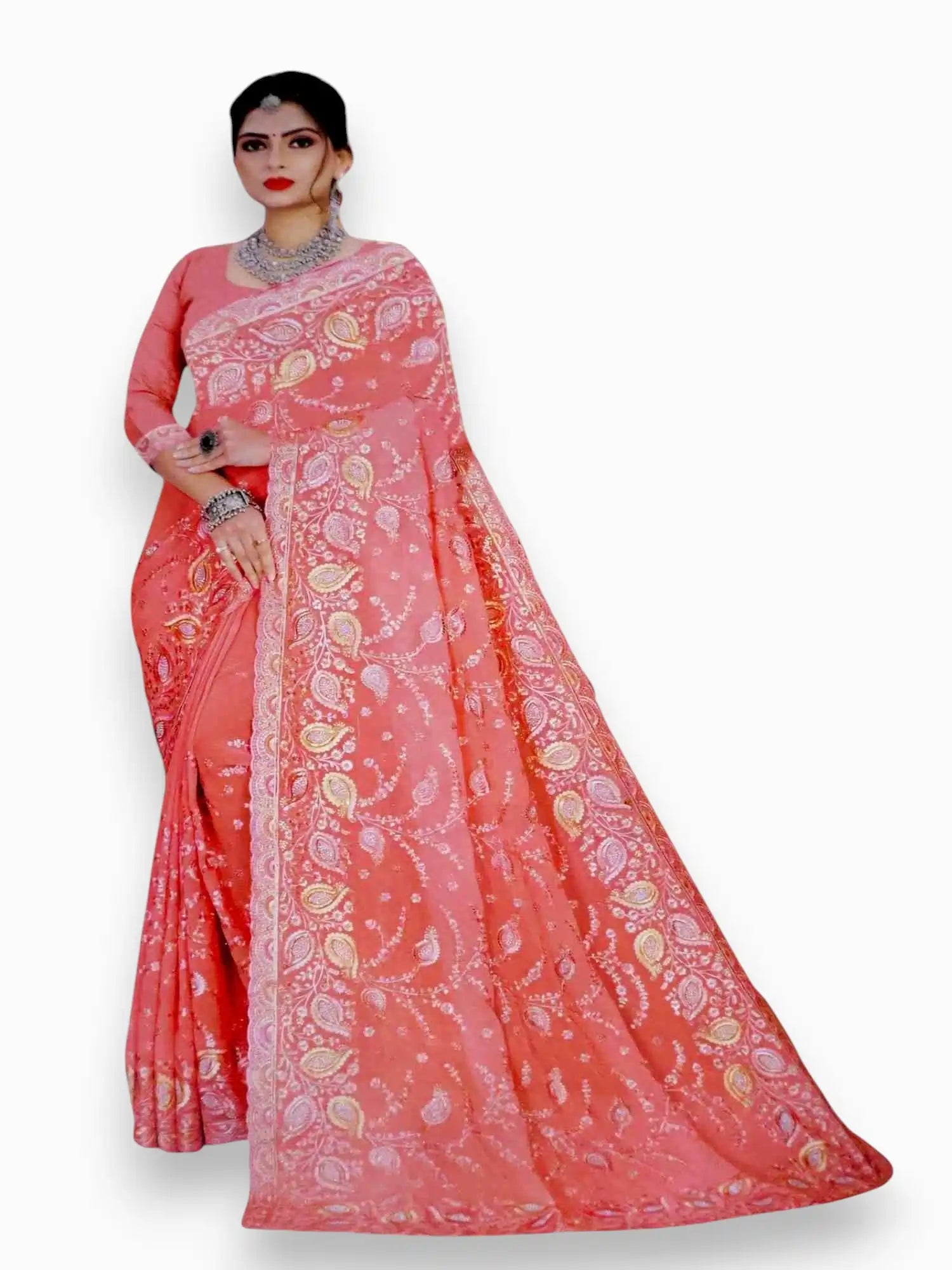 | Blouse:- Chiffon | Border:- Floral Cut |